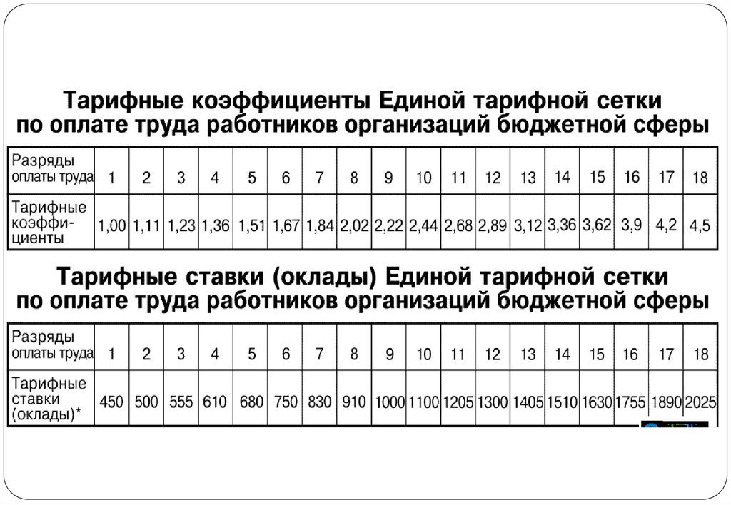 4. Система оплаты работы сотрудников бюджетной сферы по Единой тарифной сетке