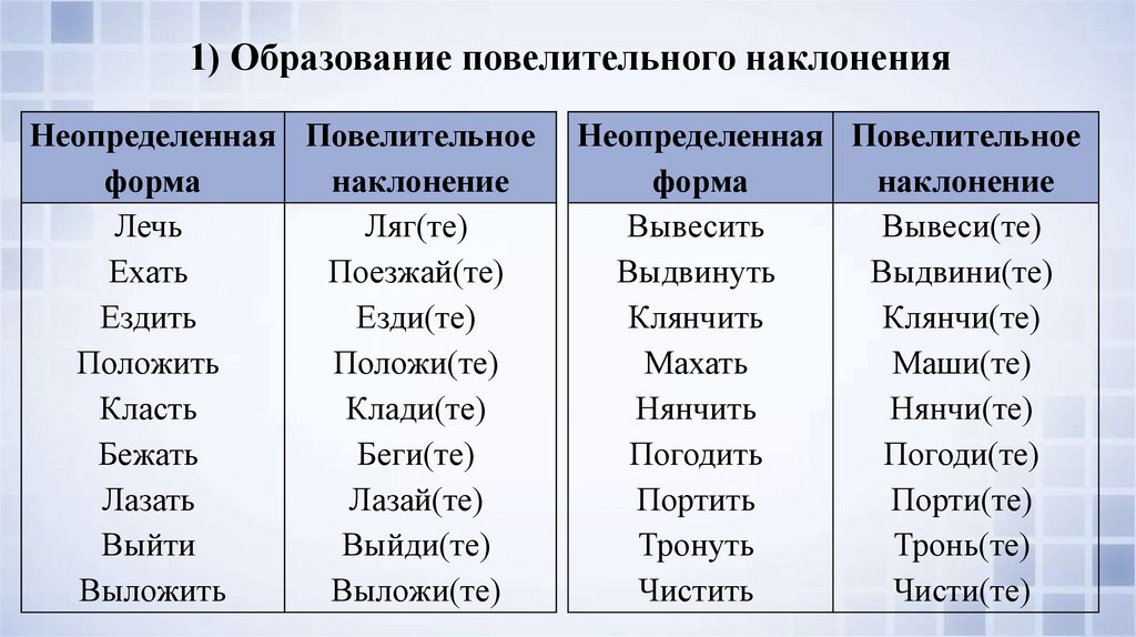 1) Образование повелительного наклоненияНеопределенная Повелительное