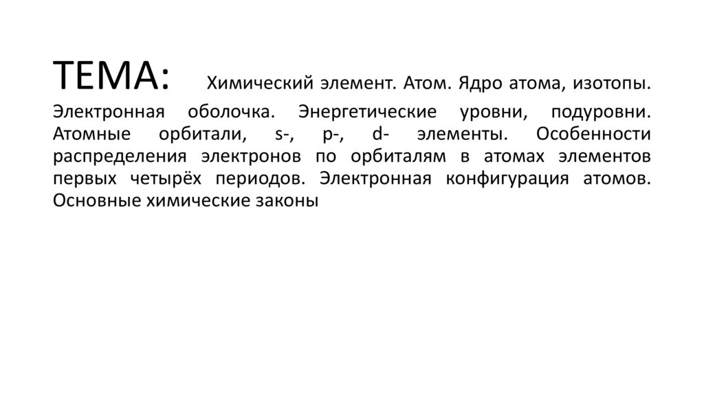 ТЕМА:Химический элемент. Атом. Ядро атома, изотопы.