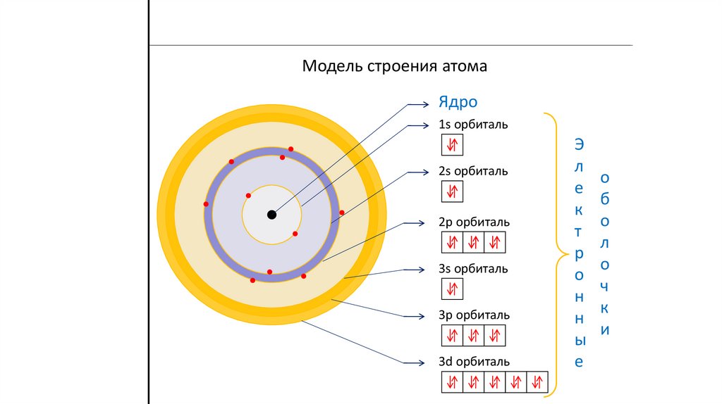 Электронная оболочка. Энергетические уровни, подуровни.