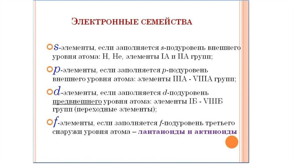 Атомные орбитали, s-, p-, d- элементы. Особенности