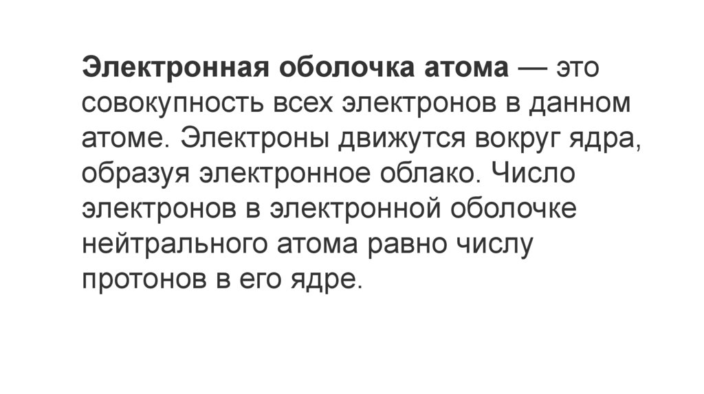 Электронная оболочка атома — этосовокупность всех электронов в данном