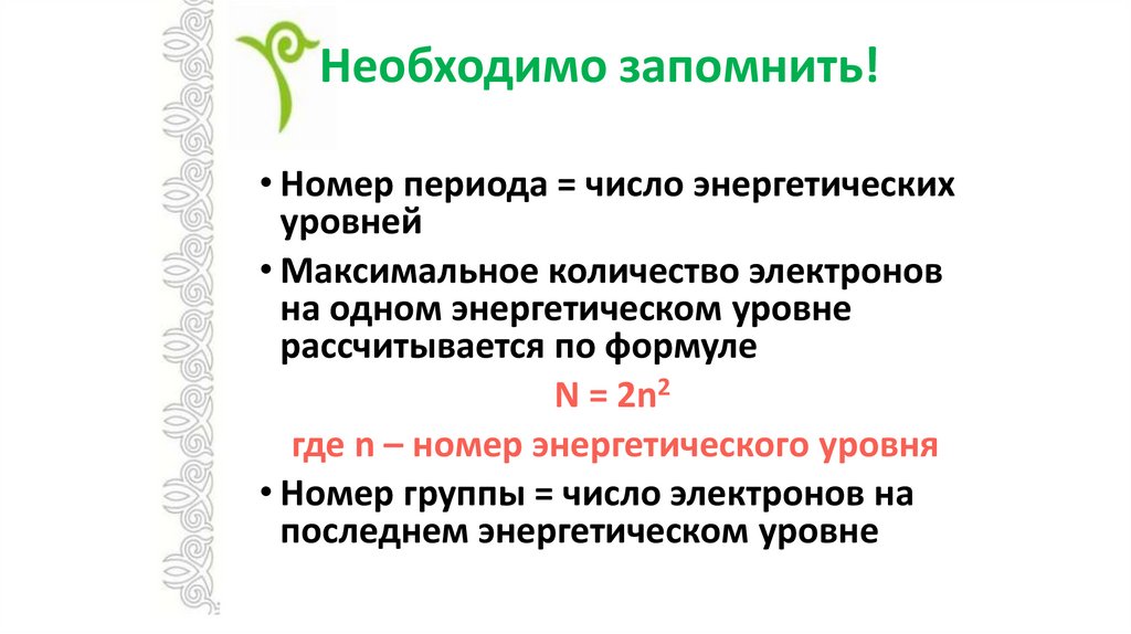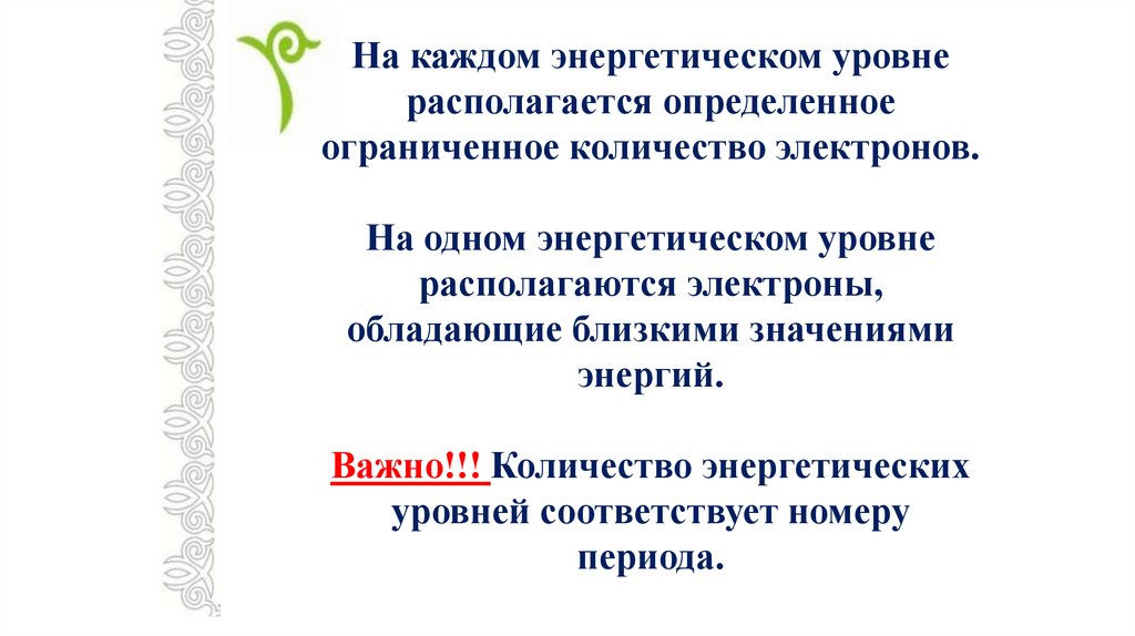 Необходимо запомнить!• Номер периода = число энергетических