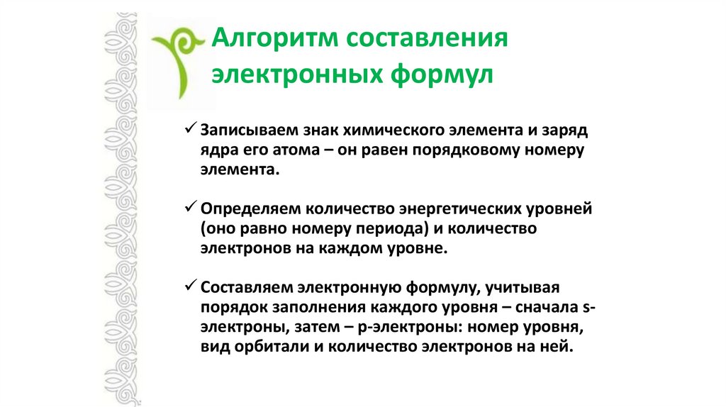 Алгоритм составленияэлектронных формул