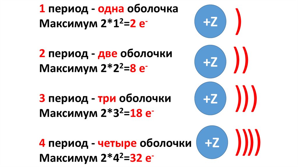 1 период - одна оболочкаМаксимум 2*12=2 e2 период - две оболочки
