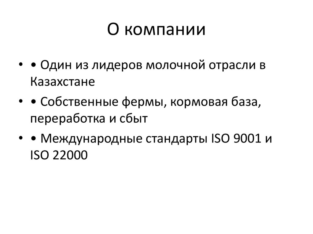 О компании• • Один из лидеров молочной отрасли в