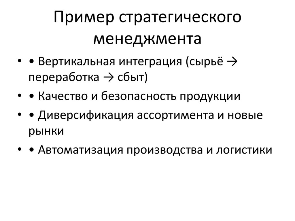 Пример стратегическогоменеджмента