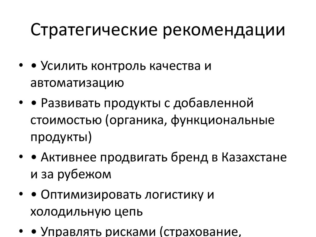 Стратегические рекомендации• • Усилить контроль качества и