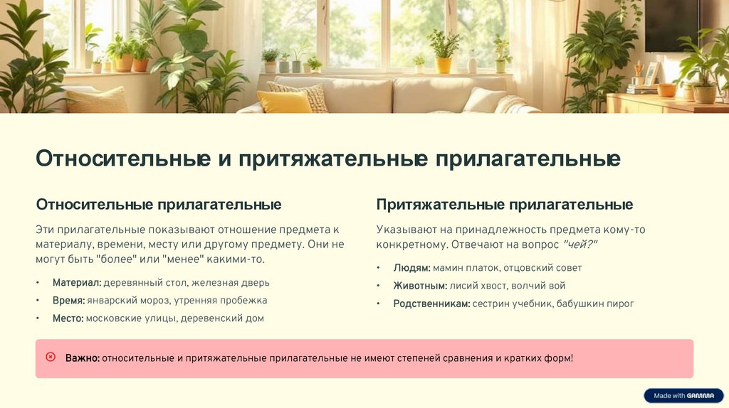 Важно: относительные и притяжательные прилагательные не имеют степеней сравнения и кратких форм!