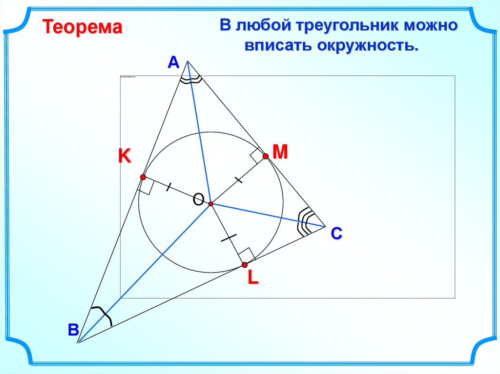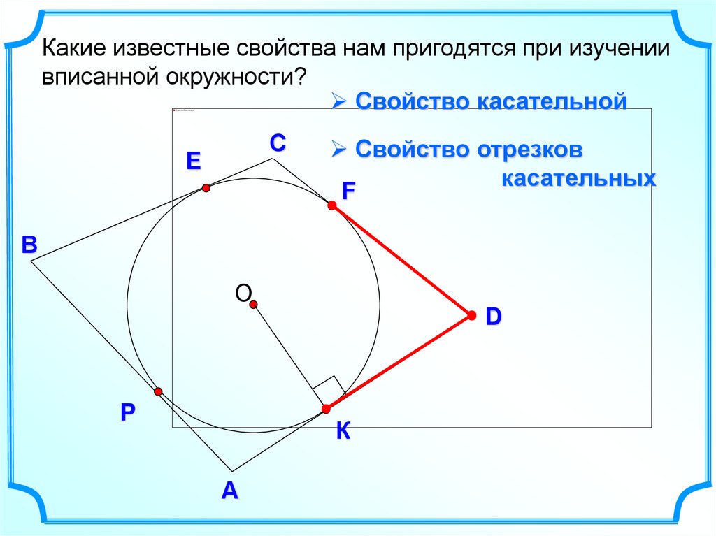 Какие известные свойства нам пригодятся при изучениивписанной окружности?