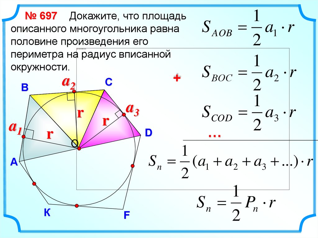 № 697 Докажите, что площадьописанного многоугольника равна