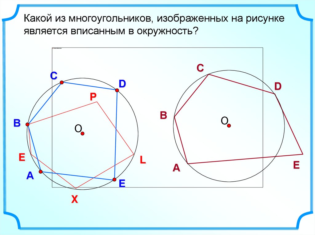 Какой из многоугольников, изображенных на рисункеявляется вписанным в окружность?