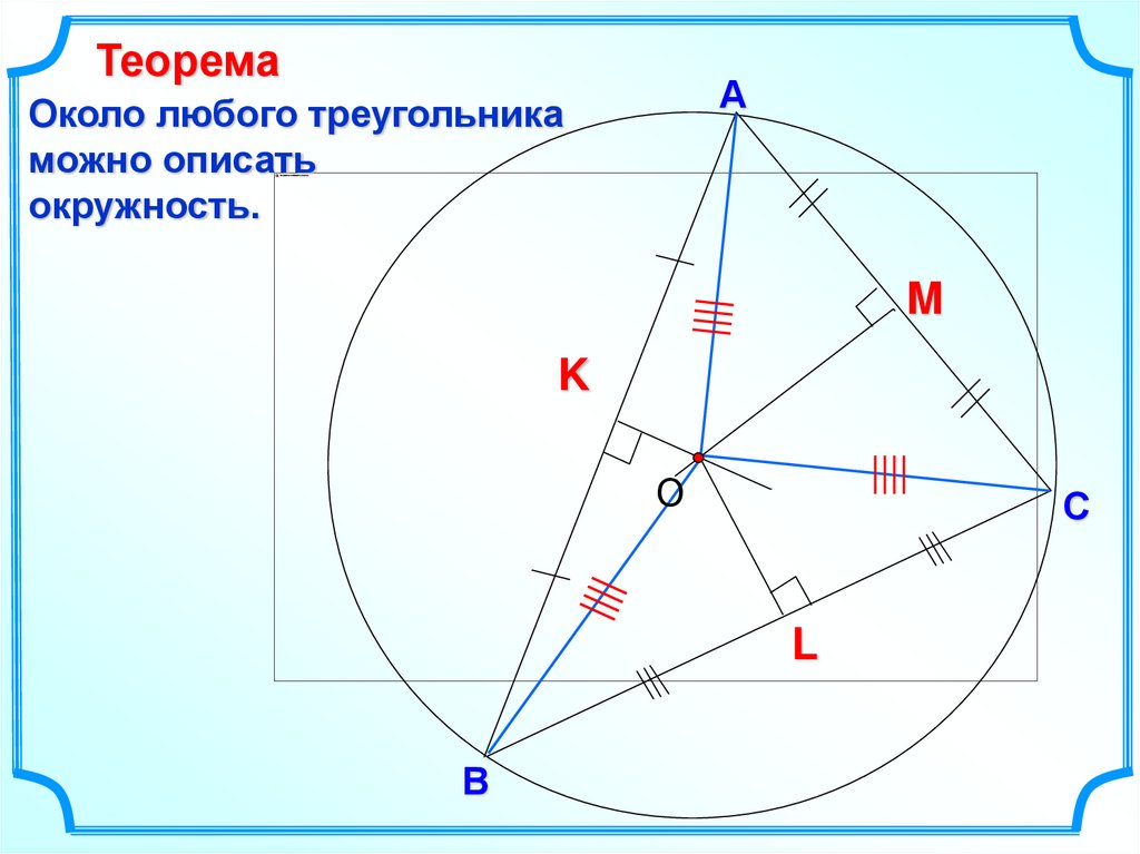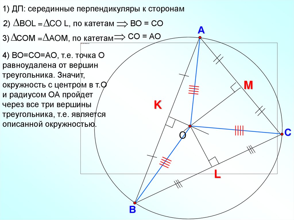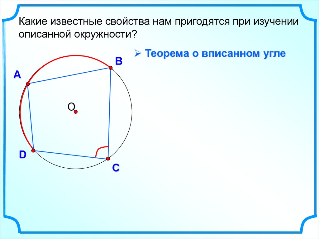 Какие известные свойства нам пригодятся при изученииописанной окружности?