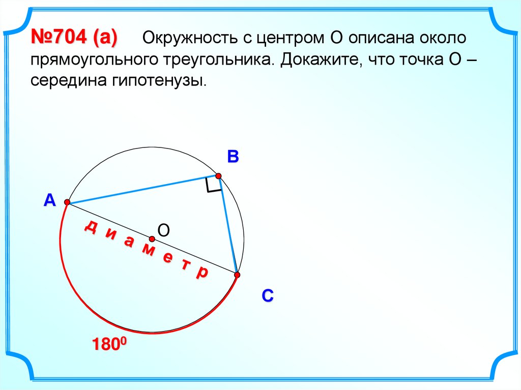 №705 (а) Около прямоугольного треугольника АВС спрямым углом С описана окружность. Найдите радиус