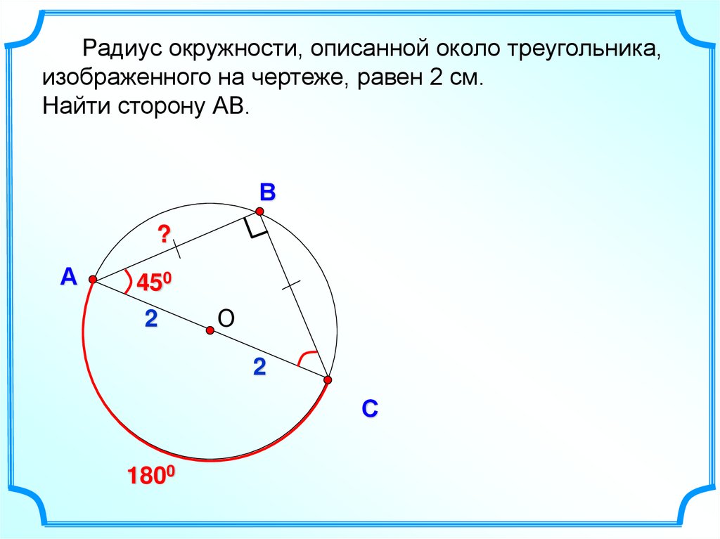 Радиус окружности, описанной около треугольника,изображенного на чертеже, равен 2 см.