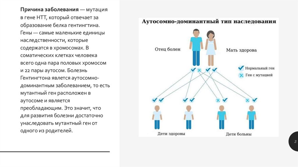 2. Болезнь Гентингтона (хорея Гентингтона) — это хроническое, неуклонно прогрессирующее, наследственное аутосомно-доминантное