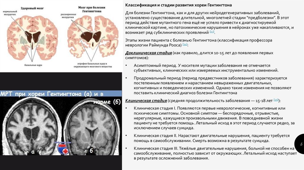 Классификация и стадии развития хореи ГентингтонаДля болезни Гентингтона, как и для других нейродегенеративных заболеваний,