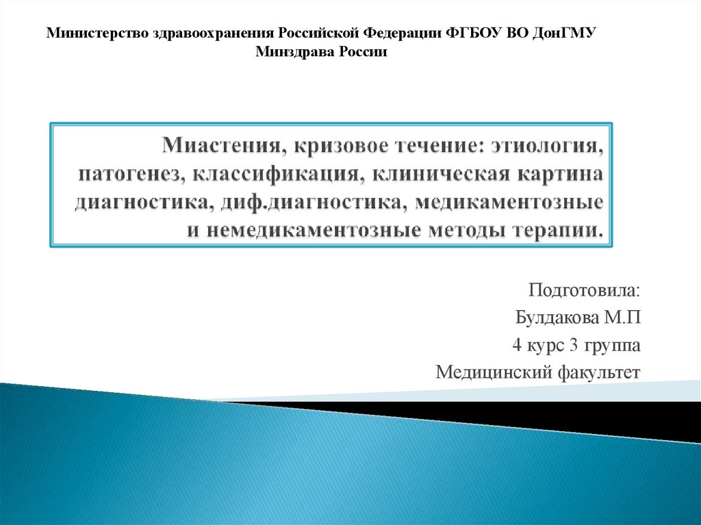 1. Миастения, кризовое течение: этиология, патогенез, классификация, клиническая картина диагностика, диф.диагностика,
