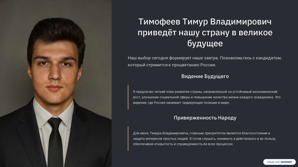Тимофеев Тимур Владимировичприведёт нашу страну в великое