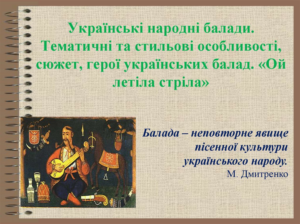 1. Українські народні балади. Тематичні та стильові особливості, сюжет, герої українських балад. «Ой летіла стріла»