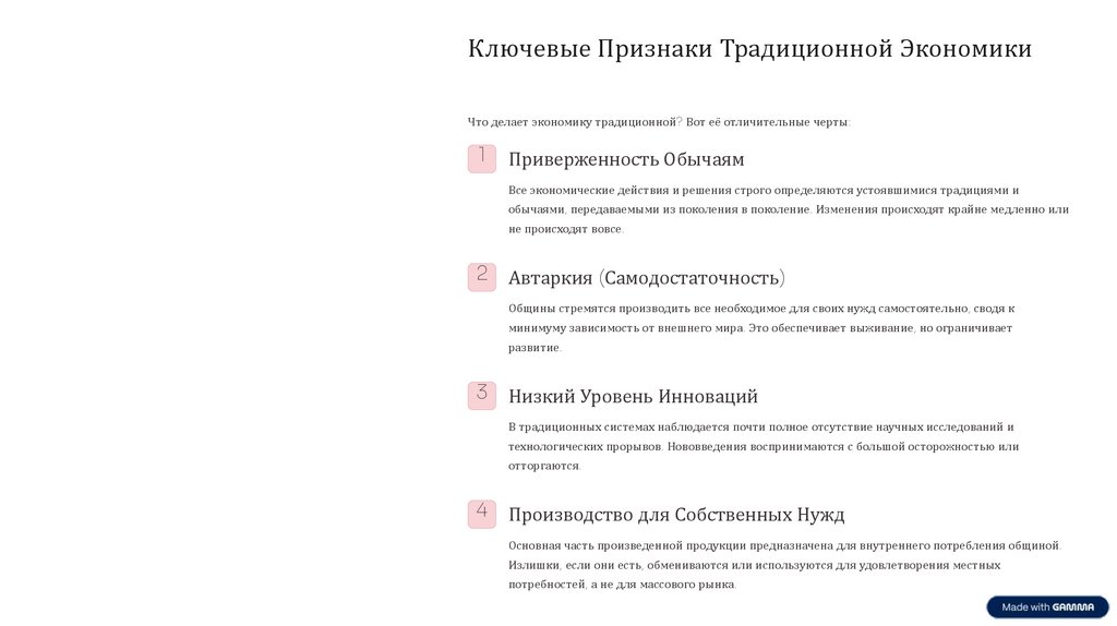 Ключевые Признаки Традиционной ЭкономикиЧто делает экономику традиционной? Вот её отличительные черты: