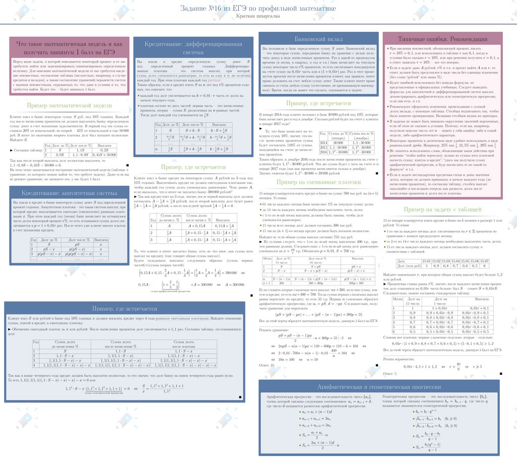 Задание №16 из ЕГЭ по профильной математикеКраткая шпаргалка