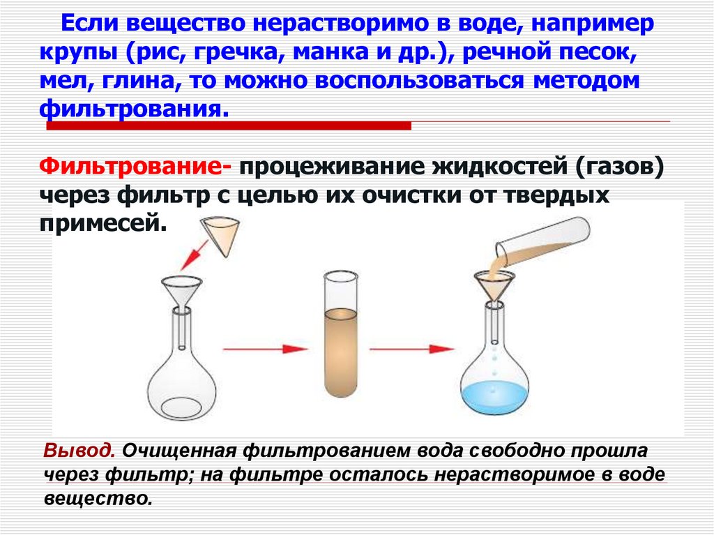 Вывод. Очищенная фильтрованием вода свободно прошла