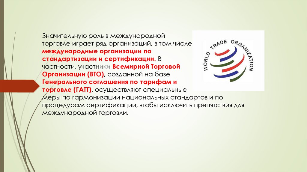 Значительную роль в международнойторговле играет ряд организаций, в том числе