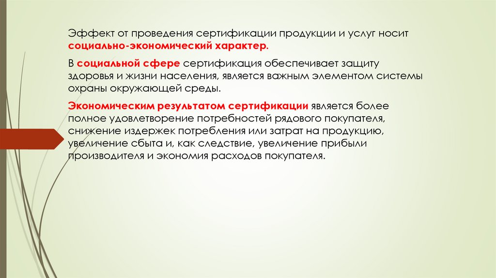 Эффект от проведения сертификации продукции и услуг носитсоциально-экономический характер.