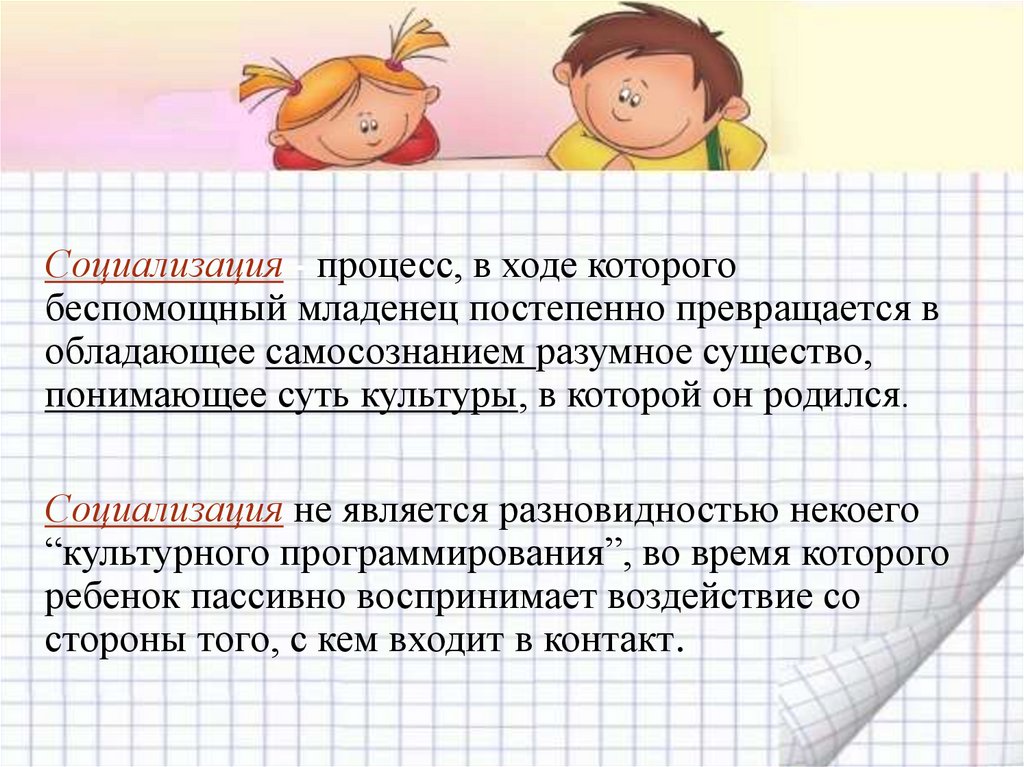 11. Социализация – принятие социальных норм независимо и в ущерб индивидуальным потребностям.