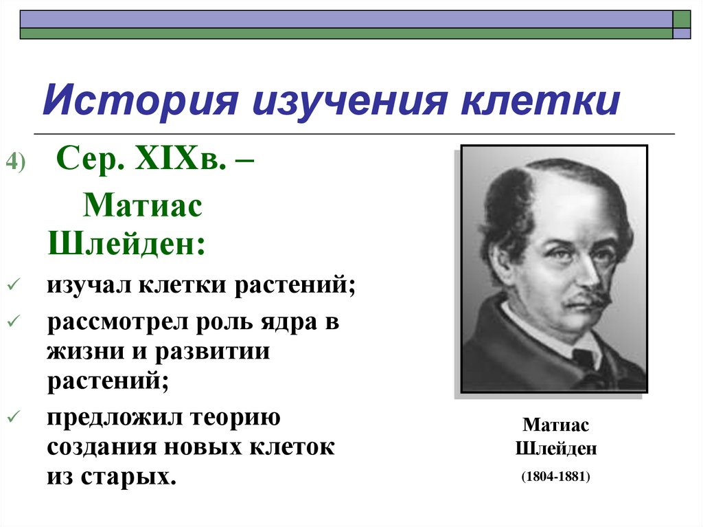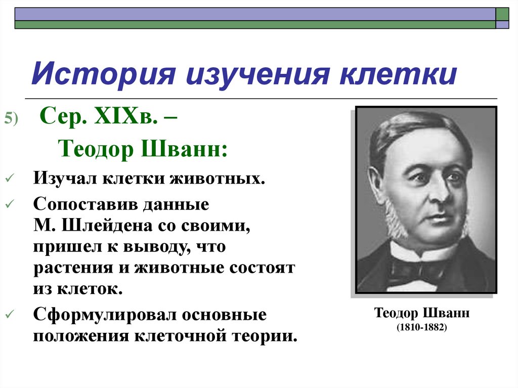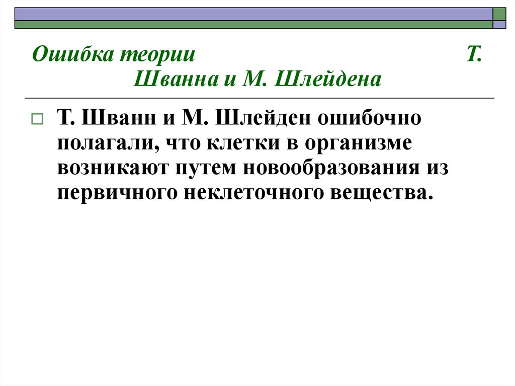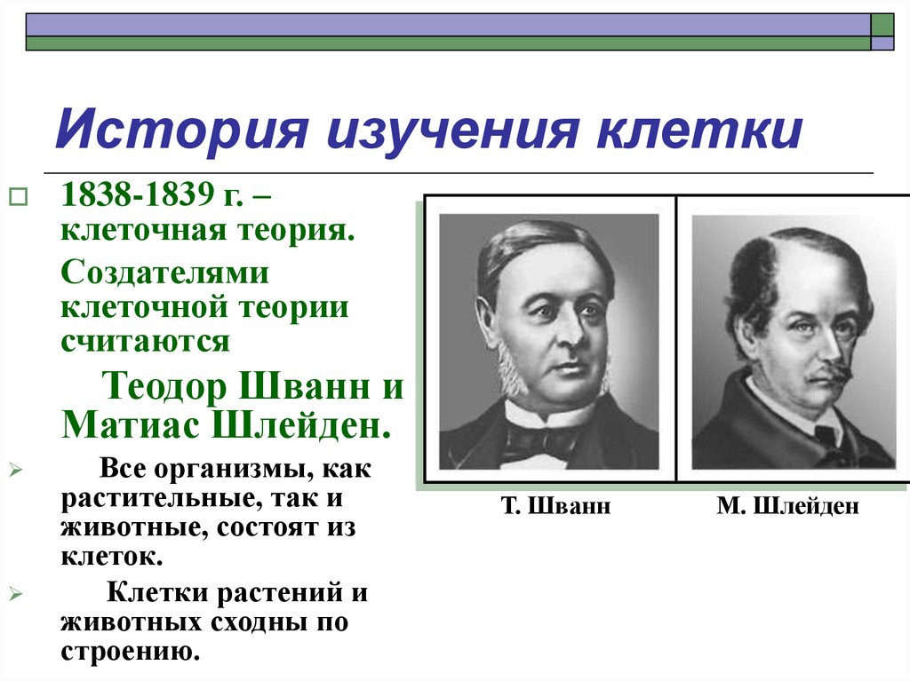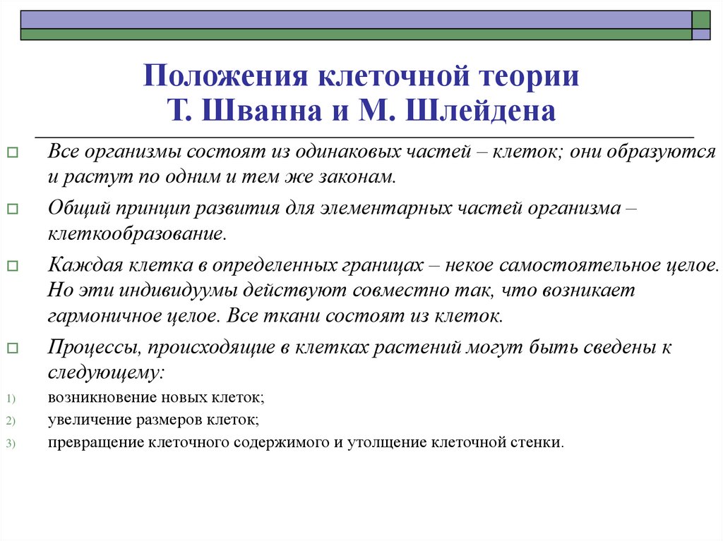 Положения клеточной теорииТ. Шванна и М. Шлейдена