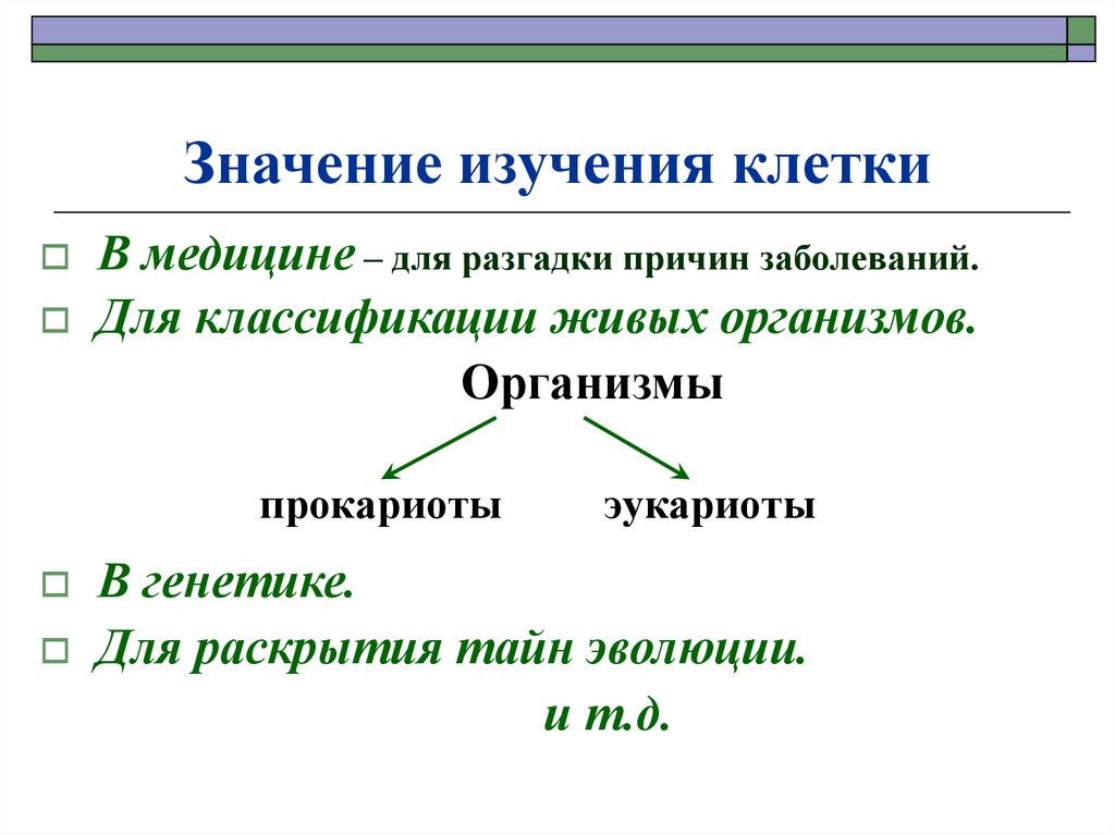 Значение изучения клеткиВ медицине – для разгадки причин заболеваний.