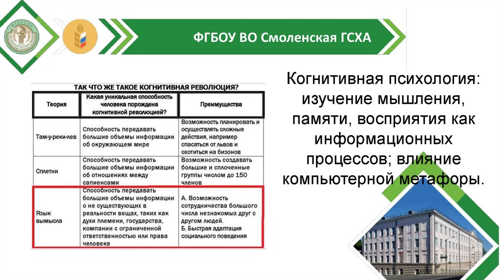 ФГБОУ ВО Смоленская ГСХАКогнитивная психология:
