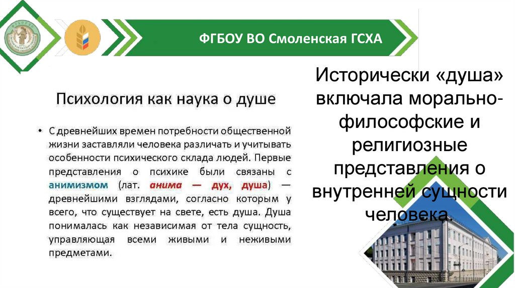 ФГБОУ ВО Смоленская ГСХАСовременная психология —