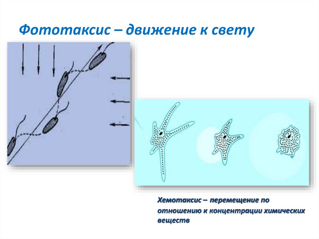 Фототаксис – движение к светуХемотаксис – перемещение по