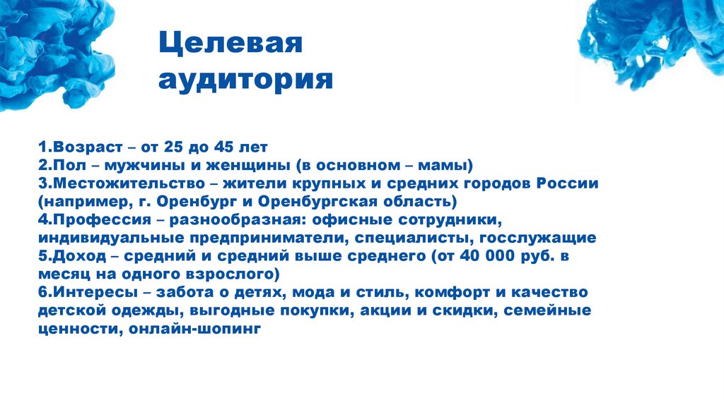 6.Интересы – забота о детях, мода и стиль, комфорт и качество