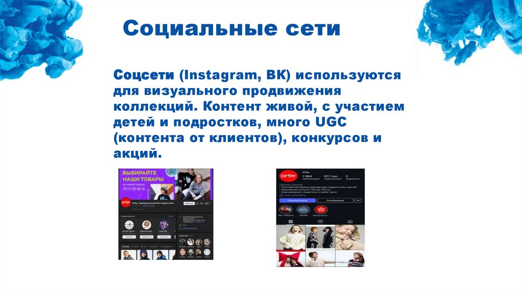 Социальные сетиСоцсети (Instagram, ВК) используются