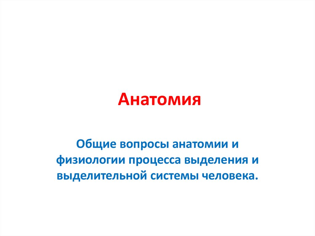 Общие вопросы анатомии ифизиологии процесса выделения и