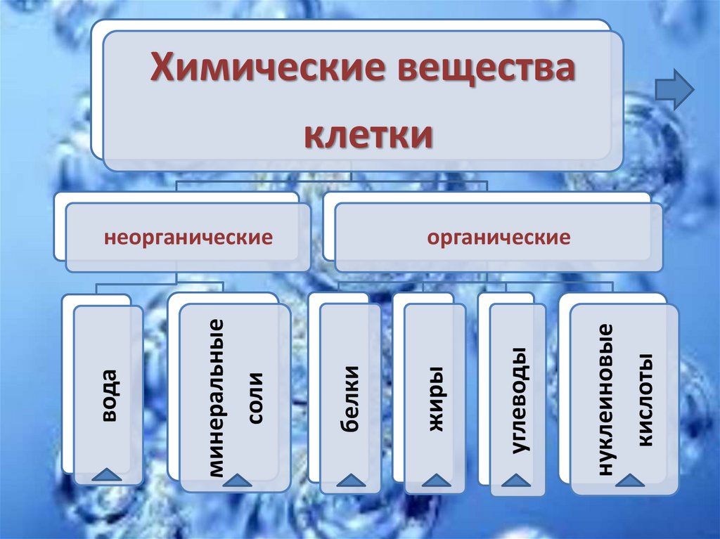 углеводов. Вода находится в цитоплазме и её органеллах, вакуолях,