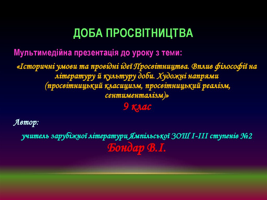ДОБА ПРОСВІТНИЦТВАМультимедійна презентація до уроку з теми: