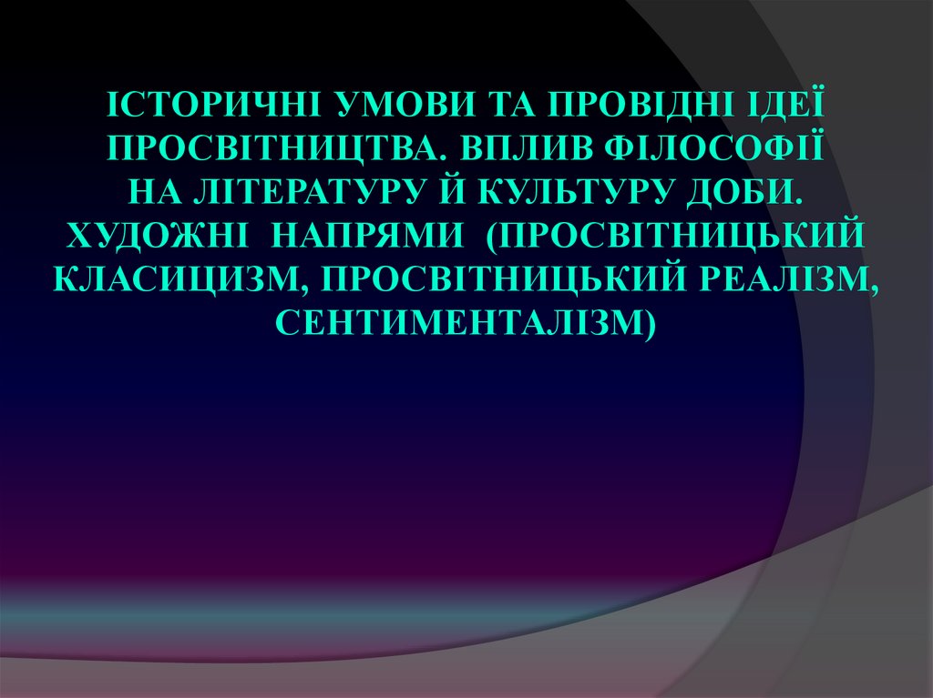 ІСТОРИЧНІ УМОВИ ТА ПРОВІДНІ ІДЕЇПРОСВІТНИЦТВА. ВПЛИВ ФІЛОСОФІЇ