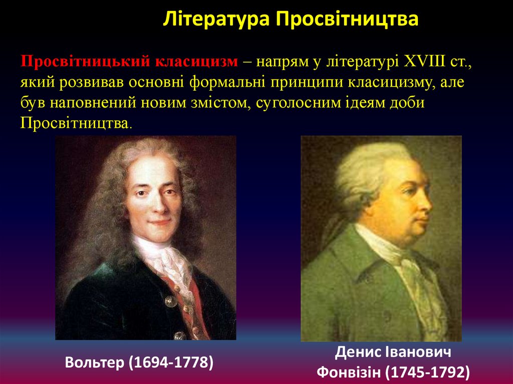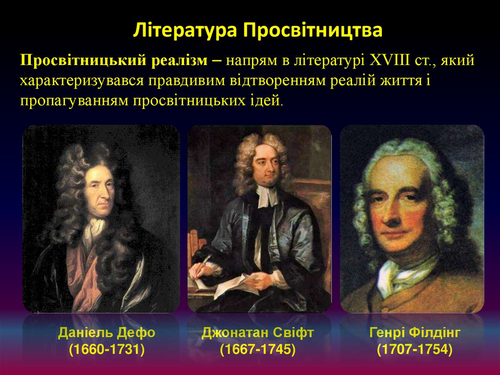 • Представники Гете, Вольтер, Дефо, Свіфт, Дідро