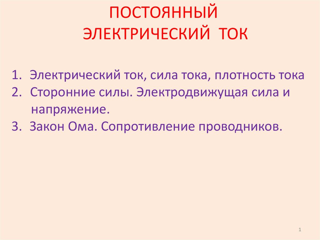 1. ПОСТОЯННЫЙ ЭЛЕКТРИЧЕСКИЙ ТОК