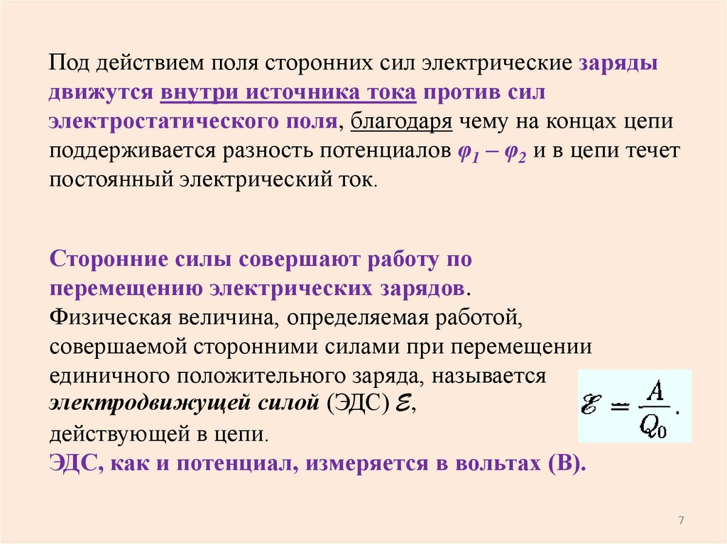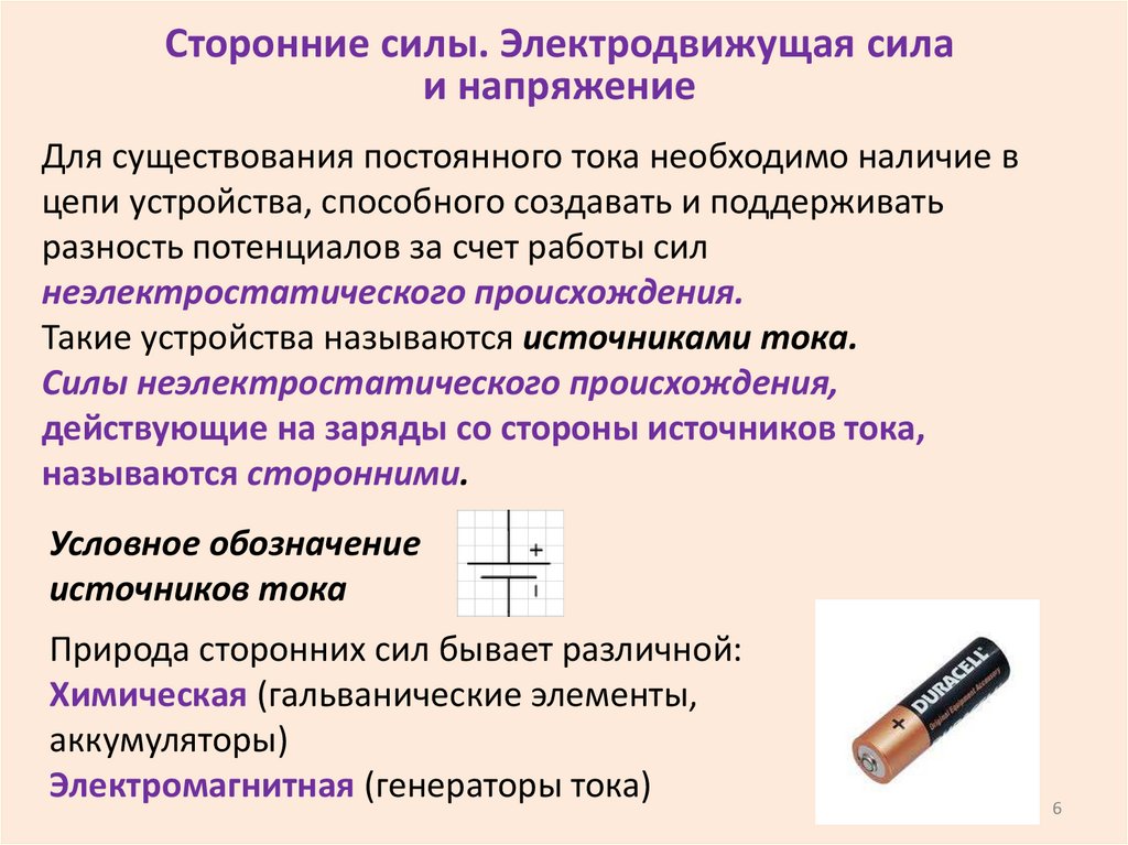 1. Электрический ток, сила тока, плотность тока2. Сторонние силы. Электродвижущая сила и