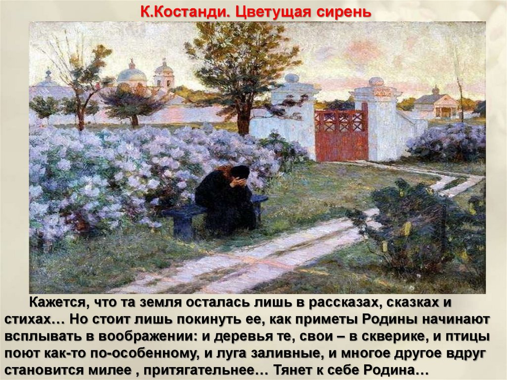 К.Костанди. Цветущая сиреньКажется, что та земля осталась лишь в рассказах, сказках и