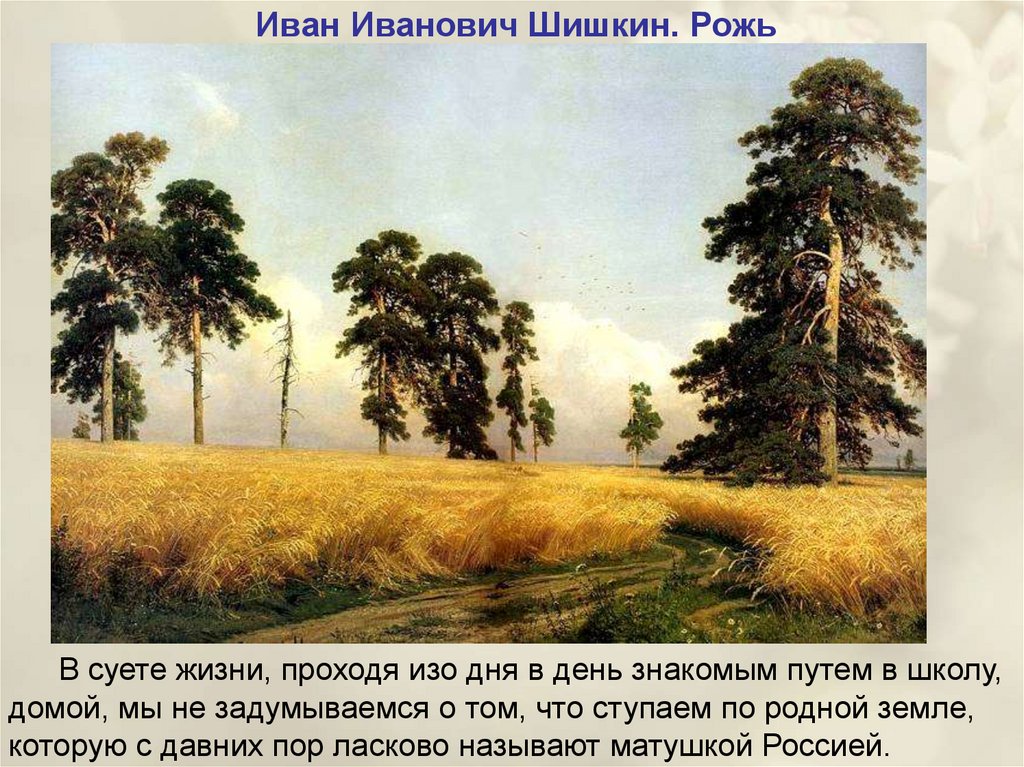 Иван Иванович Шишкин. РожьВ суете жизни, проходя изо дня в день знакомым путем в школу,
