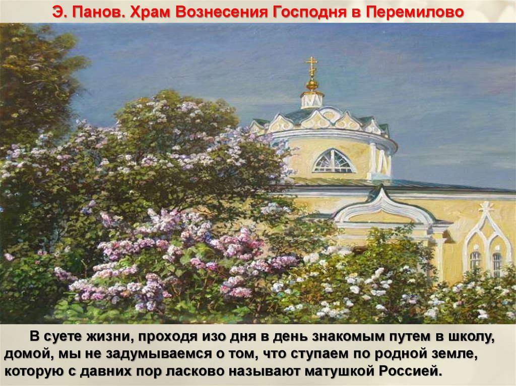Э. Панов. Храм Вознесения Господня в ПеремиловоВ суете жизни, проходя изо дня в день знакомым путем в школу,