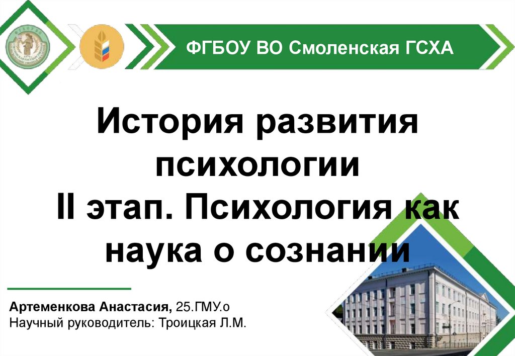 ФГБОУ ВО Смоленская ГСХАПсихология как наука о сознании