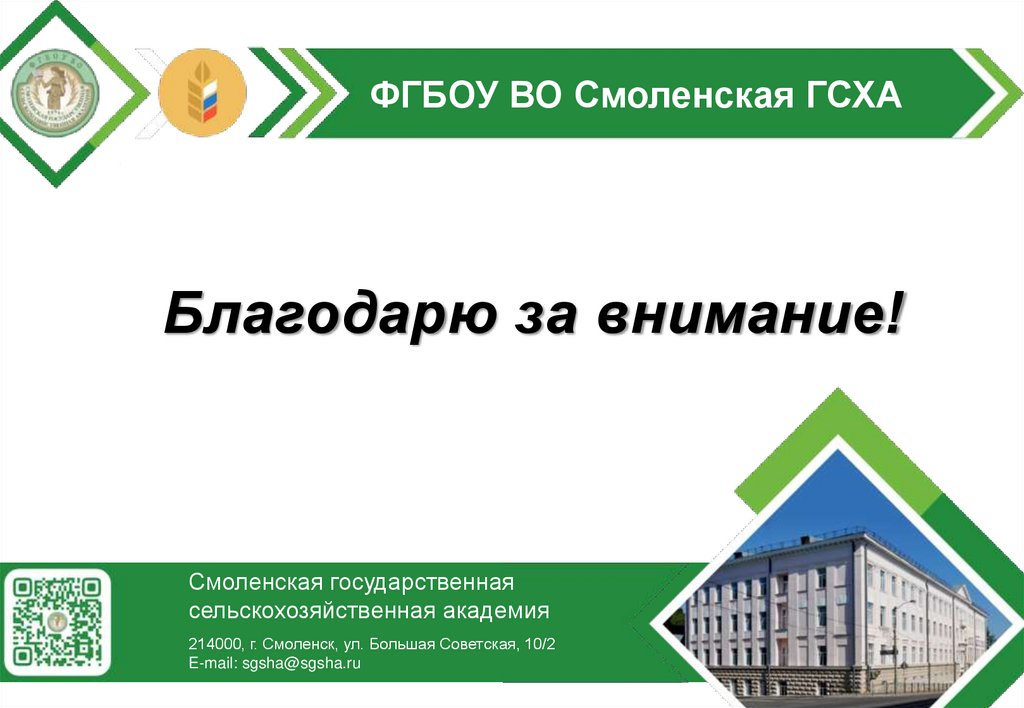 ФГБОУ ВО Смоленская ГСХАБлагодарю за внимание!