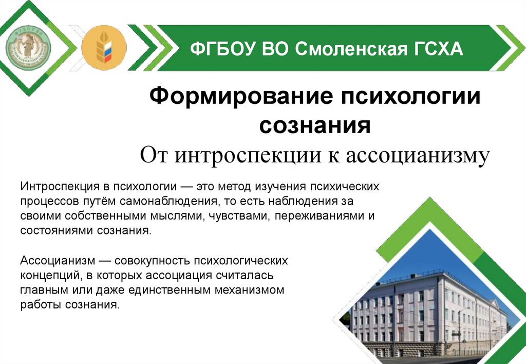 ФГБОУ ВО Смоленская ГСХАМетодологические основы: Роль интроспекции и